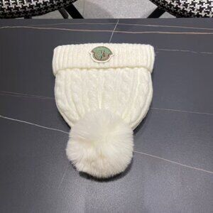 Moncler Women's White Wool Beanie with Pom-Pom Detail