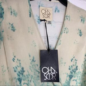 CHASER Boho Blue Silk Chiffon Floral Tapestry Bell Sleeve Fringe Romper