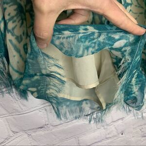 Chaser Boho Blue Silk Chiffon Floral Tapestry Bell Sleeve Fringe Romper
