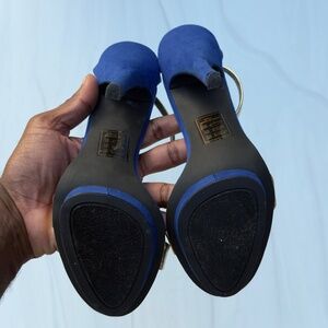 My wife is selling these stunning heels featuring a bold mix of blue and metallic gold. Perfect for turning heads at any event, their striking color combo guarantees you’ll stand out with every step!