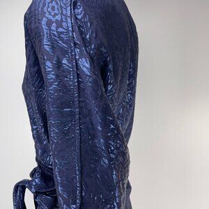 ETRO 2480$ NWT Wrap-effect Metallic Cloqué Floral Ruched Dress Royal blue IT 40