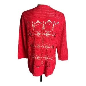 Vintage Liz Claiborne New York Red Crochet Knitted Cardigan Size L