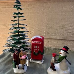 Department 56 Flocked Felt Snow Tree, snowman & boy, Couple Phonebooth
