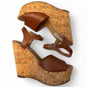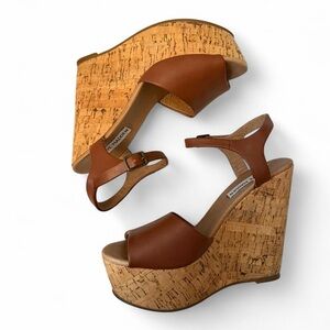 Steve Madden Brown genuine leather wedge sandals with cork platform #boho perfect for summer vacation or festivals