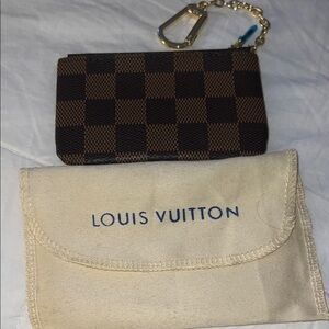 Louis Vuitton Brown Checkered Key Pouch with Gold Chain