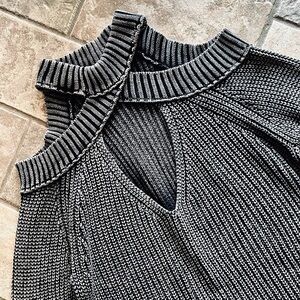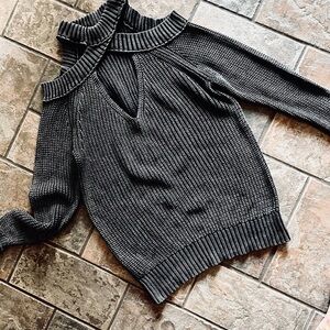 ⭐️BOGO FREE⭐️FREE PEOPLE "Half Moon" EUC Halter Sweater Grunge Distressed S