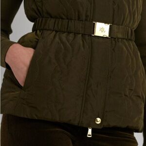 Sporty style with a refined Lauren Ralph Lauren twist, this quilted funnelneck vest merges a cable-quilted construction with plush 650-fill-power down and a water-resistant shell. This layer is finished with an "LRL"-engraved buckled self-belt for a defined figure.