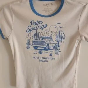 Embrace adventure with the Vinyl Palm Springs Adventure Tee. This cream and blue top is perfect for casual outings.