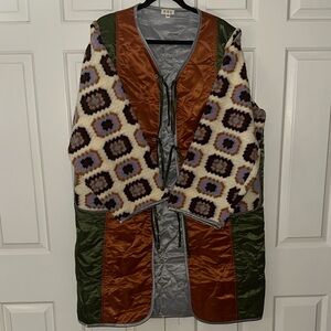 Turn heads with this vibrant patchwork design with orange and green panels. Cozy and stylish for any occasion. Lightweight unique piece. New never worn. Perfect for fall ๐๐
