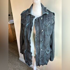 Free People Double Cloth Jacket Military Drawstring XS Distressed Wash Gray NEW