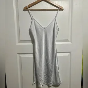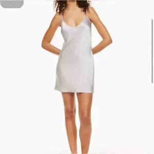 This is a mini slip dress with a V neckline and a bias cut. It’s made from Effortless Satin™ — drapey, lightweight Japanese satin with a glossy look and feel. Adjustable straps for the perfect fit!
