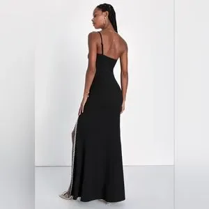 Absolutely Sensational Black Rhinestone One-Shoulder Maxi Dress