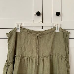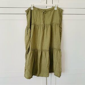 Cut Loose Green Linen Tiered Midi Skirt Size Medium