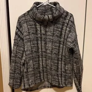 Columbia Black and Gray Plaid Turtleneck Sweater
