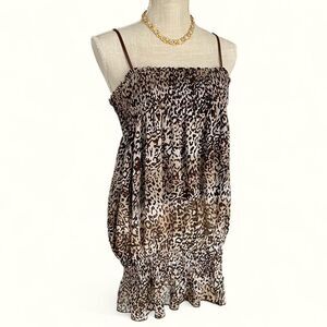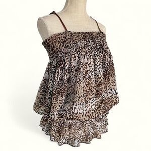 leopard print, ruched top, y2k style, striped pattern, adjustable straps, ruffle trim, mini dress, versatile top, stretchy fabric, vintage aesthetic
