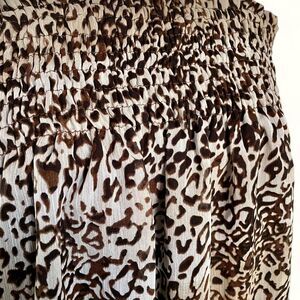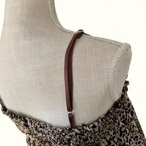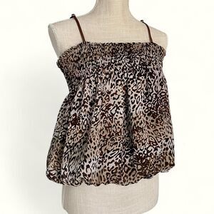 Vintage Y2K 2000s Brown and black leopard print and striped bubble hem cami top with adjustable straps, elasticated ruched top and bottom