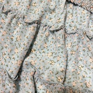 Chic sleeveless top and skirt set with a floral pattern. Features a light blue color with delicate floral details. Has adjustable straps. Worn once.