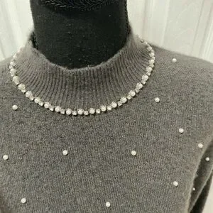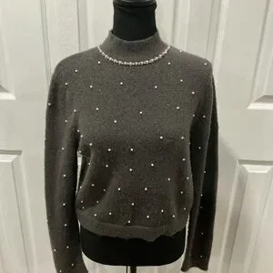 Stylish gray wool blend sweater featuring delicate pearl embellishments. Ideal for a sophisticated look.