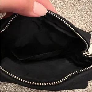 Sleek black crossbody bag. Features a front zip pocket. Adjustable strap for comfort. Perfect for everyday use.