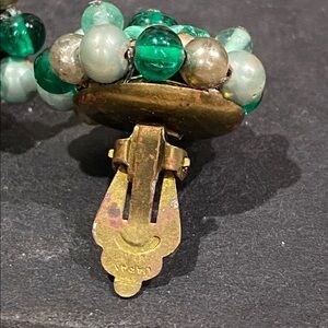 Japan Vintage Glass and Acrylic Cluster Earrings with Green Beads