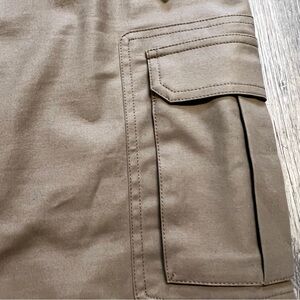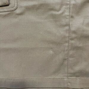 Beautiful and casual Light brown Lafayette 148 knee-length cargo skirt with three pockets, slit at center back and concealed zip closure at front.