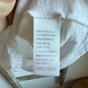 JAMES PERSE CASUAL HIGH GAUGE DEEP CAP SLEEVE JERSEY TEE WHITE sz: 2 or Medium.