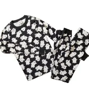Fun ghost pattern on soft pajamas. Perfect for bedtime comfort.
