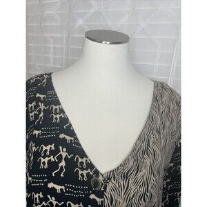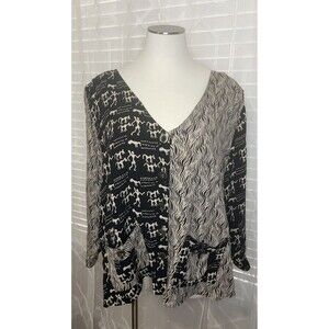 Avenue Top Womens Size 30 Black Button Up Long Sleeve Oversized Flowy Patterned