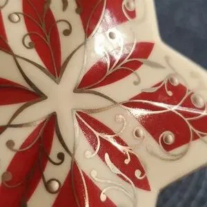 Lenox Ornament Porcelain Red & White Star with Silver Design