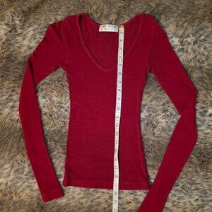 Juicy Couture red long-sleeve ribbed v-neck tee S