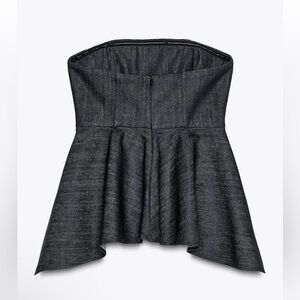ZARA Denim strapless top Size Medium Asymmetric hem Hidden inseam zip closureNWT