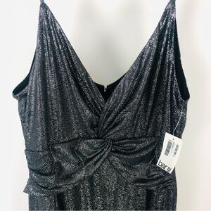 NWT Bar III Silver Metallic Faux Wrap Dress Flowy V-Neck Cocktail Party Dress