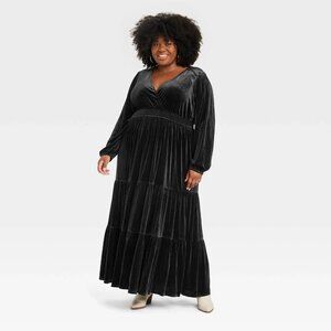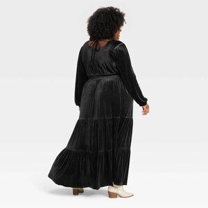 Elevate your wardrobe for casual outings or dressier occasions in this Long Sleeve Velvet A-Line Dress from Knox Rose. Made from lightweight fabric with a hint of spandex for comfortable wear, this velvet A-line dress in a maxi length features a flattering V-neckline and an elasticized waist, making getting ready for any occasion an effortless affair. The back tie closure helps you find the right fit, while a tiered bodice adds pretty movement to your look. Simply pair it with your favorite style of footwear and stud earrings to complete your ensemble.
