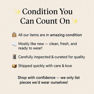 Excellent used condition. No rips stains or other flaws. Ready to ship from smoke free pet free home. No tags.