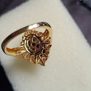 Natural Chocolate Sapphire and Zircon Kite shaped Coctail Ring in Gold Vermeil 7.20ctw. beautiful faceted Chocolate Sapphire center stone is prong set onto a 4 point kite shape adorned with white zircon that sparkle like diamonds. sz. 8
