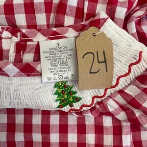 Girls nwot 3T Red Gingham Smocked Christmas Dress Embroidered Trees Puff Sleeve
