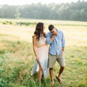 Lulus Size M Sweet Sunset Ombre Dip Dyed Halter Maxi Dress Blue Blush Cream