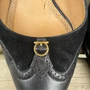 Salvatore Ferragamo Neissa pumps in black suede and leather shoes size 7.5 B