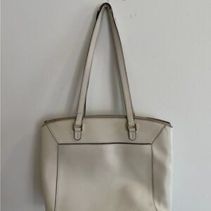 Elegant white tote bag by Kate Spade. Features a sleek design with ample space.