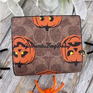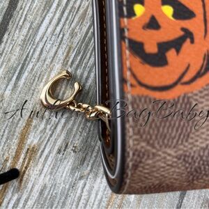 Authentic Coach Snap Wallet In Signature Canvas With Halloween Print Bag Purse