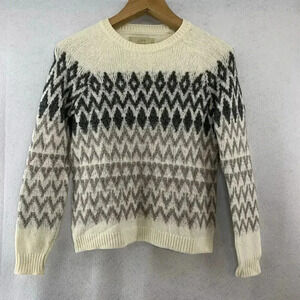 Ann Taylor LOFT Crewneck Brushed Fair Isle Sweater Size Medium Whisper White