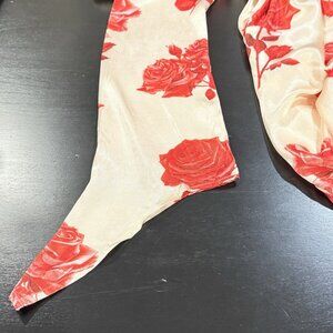 NWT Meshki Davina Satin Long Sleeve Backless Floral Red Mini Dress Womens Large