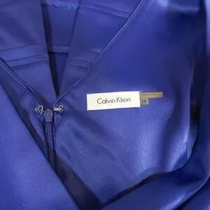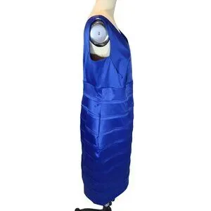 CALVIN KLEIN Sapphire Blue Satin Sleeveless Sheath Dress 16 Evening Cocktail