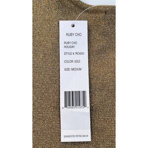 Elevate your festive wardrobe with this elegant Ruby Cho Sleeveless Shimmer Gold Holiday Top (Style #RC4051) in Size Medium. Crafted from a luxurious blend of 85% silk, 10% rayon, 5% polyester, this top is soft, breathable, and has a subtle shimmer—perfect for holiday parties, evening events, or special occasions.
