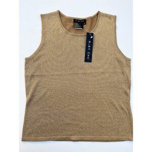 Ruby Cho Sleeveless Shimmer Gold Holiday Top RC4051 Size M Silk Blend NWT