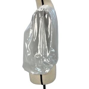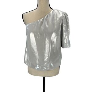 INC One Shoulder Short Puff Sleeve Blouse - Tuntex Silver - size Small