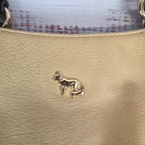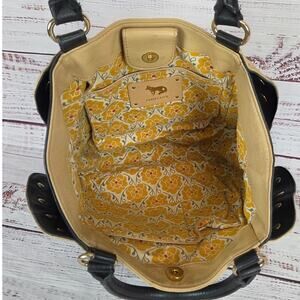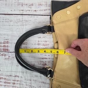 Emma Fox Black Tan Leather Top Dual Handle Satchel Purse Timeless Designer Bag