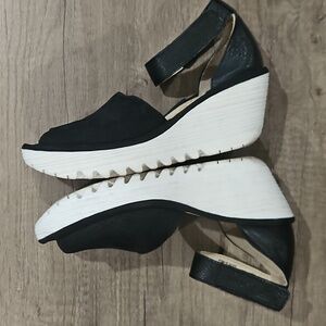 Fly London Yake 881 Cupi Mous Black Wedge Sandal Suede Leather White Sole 37 7