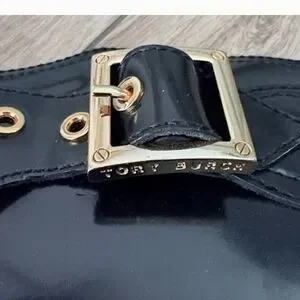 Tory Burch Black Combat Boots with Gold Accents