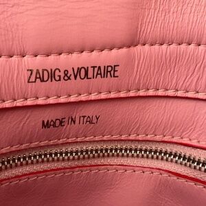 Flap with iconic brand WINGS and Magnetic snap closure with decorative ring -engraved”Kate & Zadig & Voltaire”